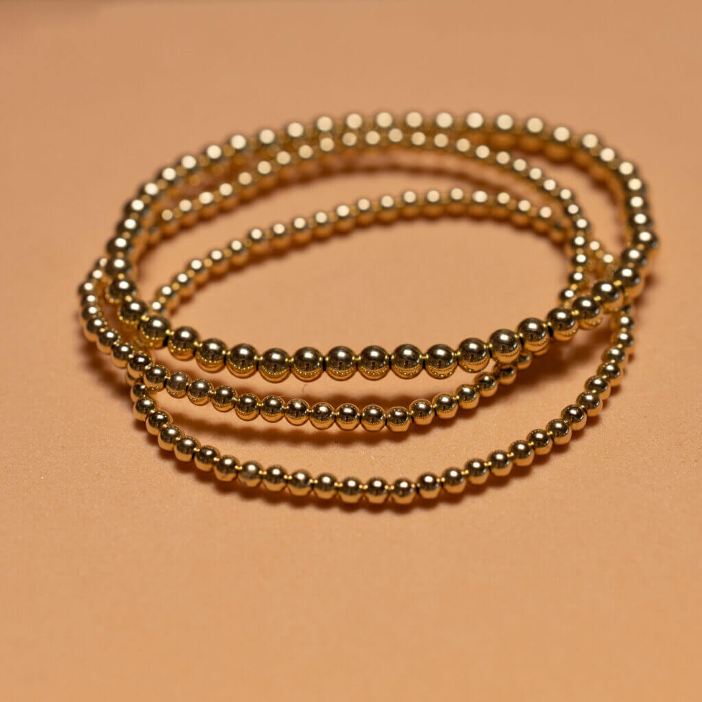 Looking for more Gold Bead Bracelets? You can also purchase them separately and select what size beads you’d like. These bracelets stand out on their own and pair beautifully with other bracelets. Combine them with silver and rose gold options to create an eye-catching mix. The warm glow of gold is a must-have for your summer accessory collection.