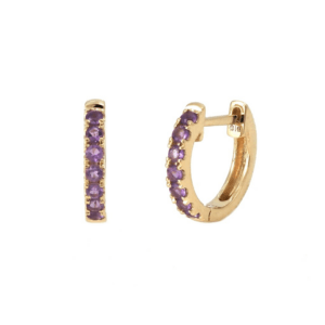 These 14k yellow gold Amethyst Huggies are the perfect accessory to any outfit, and the perfect gift for anyone celebrating a February Birthday.