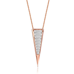 This 18k gold 16″ necklace features a long baguette diamond triangle. Our Baguette Diamond Long Triangle Necklace is great for everyday wear.