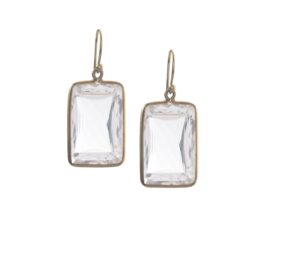 18k Yellow gold hook back earrings with faceted bezel set clear Crystal rectangles.