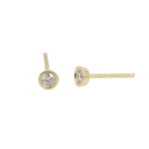 Tiny, everyday 14k gold stud earring featuring a 1.5mm bezel set diamond.