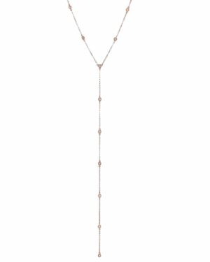 14k Yellow, Rose or White gold cable chain Y necklace with bezel set round Diamonds by the yard all the way through.