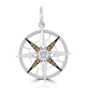 This Diamond Compass Pendant comes in 18K white gold with .47ct brilliant, rose cut, and brown diamonds. This is for the pendant only.