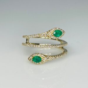 14K yellow gold with Emeralds and white Diamonds.