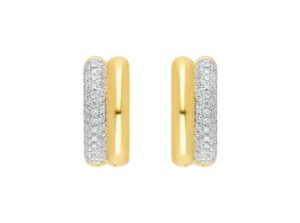 These double Huggies of 14k yellow gold and pave diamond add the perfect sparkle to your ear and elevate any outfit.