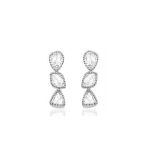 These Freeform Rose Cut Diamond Milgrain Earrings come in 18K white gold with 3 stacked .43ct rose cut diamonds.
