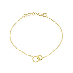 With a unique yet timeless design, our Intertwining Ring Bracelet makes for the perfect addition to your stack. Crafted in 14K gold, this bracelet features a delicate twisted ring that intertwines with a smaller, smooth ring for a harmonious look. This elegant and dainty bracelet will effortlessly fit into your casual or dressed-up ensemble.