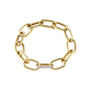 14k Yellow Gold large oval links bracelet with 1 pave diamond link.