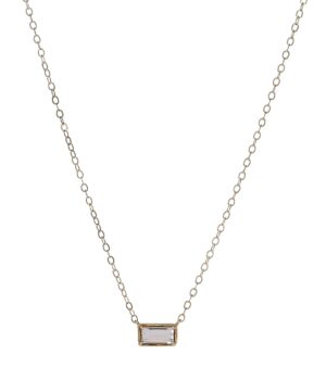 14k Yellow gold cable chain with an emerald cut white Sapphire pendant.