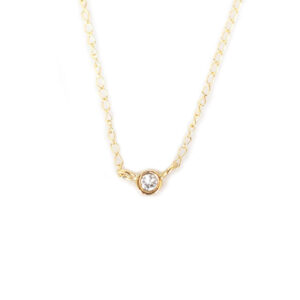 14k Yellow gold delicate cable chain with a single small round bezel set Diamond pendant.