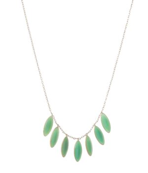 18k Yellow gold cable chain with 7 marquis shaped, minty green Chrysoprase.