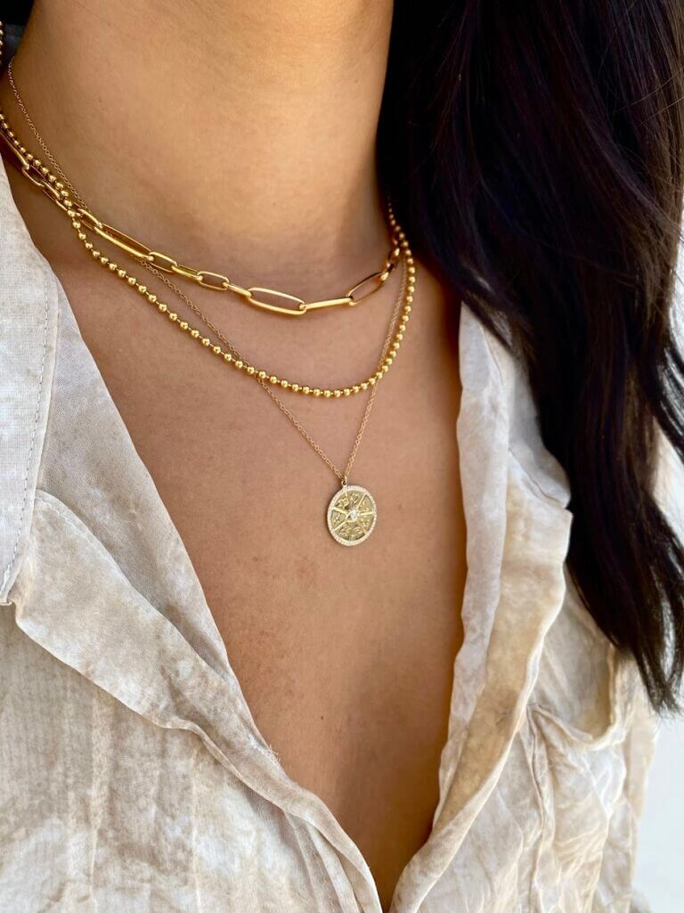 Large Pave Diamond Disc Necklace