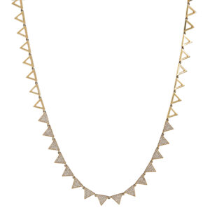 14k Yellow gold triangles linked together, open on the sides and pave Diamond triangles at the center.