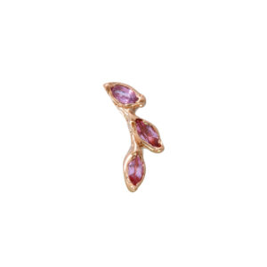 14k Rose gold post and friction back stud with 3 marquis shaped pink Sapphires.