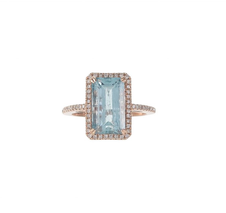 Pave & Aquamarine Rectangle Ring