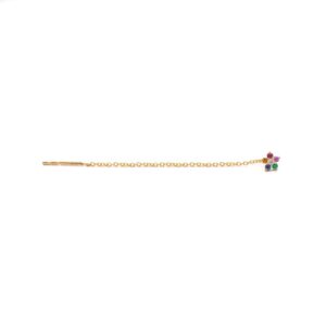 14k Gold cable chain threader earring with a multi-colored Sapphire flower with Diamond center.
