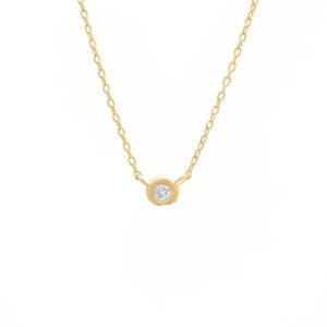 A minimalist yet chic diamond necklace you’ll never want to take off. Crafted in 14K yellow gold, this timeless necklace features a round bezel set diamond, perfect for everyday wear. Add a sparkling touch to your layered look with this diamond necklace or wear on its own for a simple, classic look.