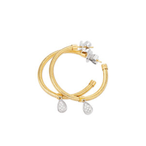 18k yellow gold snake chain hoops with pear shaped pave diamond stainless steel sliding hoop charms 0.10 ctw