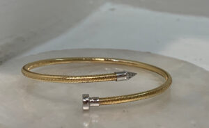 18k yellow gold snake chain open nail bracelet with pave diamond stainless steel accents 0.01ctw