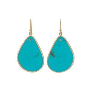 18k Yellow gold hook back earrings with dangling Turquoise slices and an inset Diamond.