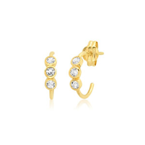 14k Yellow gold post and friction back stud with a hoop featuring three bezel set White Topaz stones.